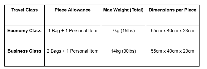 The airline takes cabin space seriously because they want to ensure every guest has a smooth departure. To help you, this is what we have organized as the core requirements into the following table: